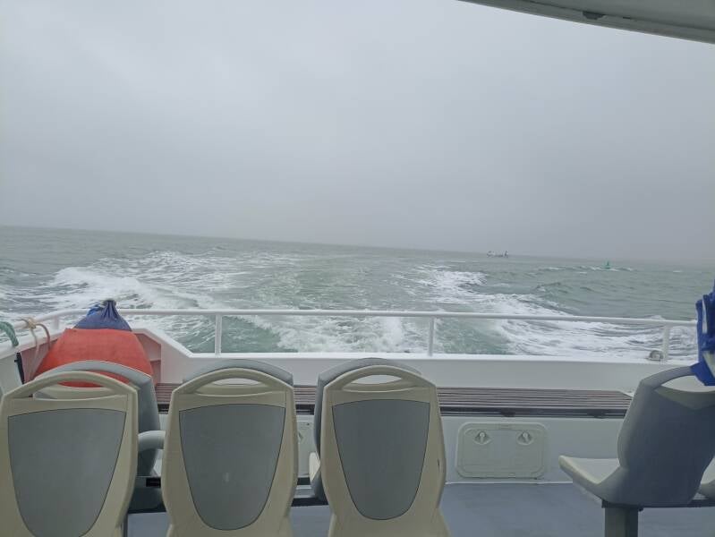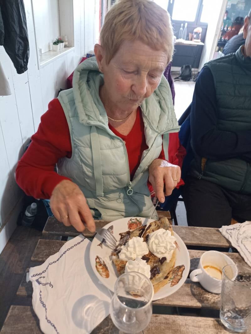 Après avoir débarquer, la pluie nous tenant toujours compagnie, nous décidons de laisser le pique-nique pour un restaurant et déguster des moules/frites. L'après midi fut plus agréable et avons pu faire le tour de l'ile a pieds soit environ 7kms sans relief pour certains, d'autres ayant préférer visiter quelques curiosités au village.