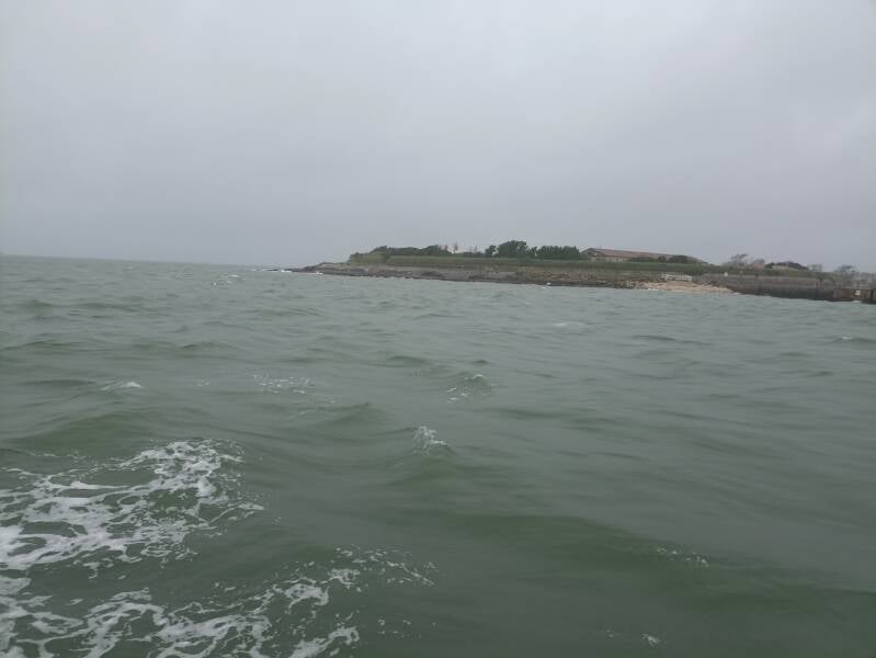 c'est une sortie a 'ile d'Aix qui est au programme de cette journée. Après le petit déjeuner nous rejoignons Boyarville, sous une pluie fine sans discontinuée, pour prendre le bateau en direction de l'ile d'Aix par un détour vers fort Boyard.