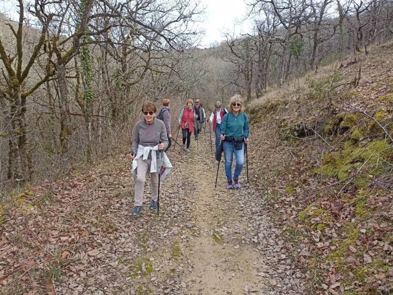 12 randonneurs pour ce parcours de 11kms. De jolies vues sur la boucle de Luzech pour parvenir a la cascade du "Payrols" qui, hélas, ne coule pratiquement pas en cette saison. Nous avons pu voir, un peu plus loin, la grotte a manganèse avant de remonter vers les vignes suivie d'une belle descente pour retrouver le village. Soleil et bonne humeur au rendez-vous