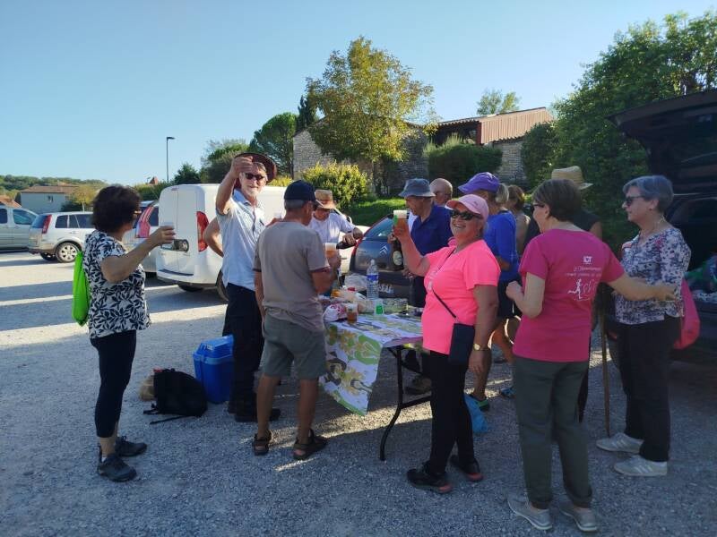 Magnifique boucle de 12kms pour nos 15 randonneurs qui se sont baladés très tranquillement entre mas et chemins. A la fin du parcours, Bernard et Patrick nous ont offert une collation pour leur changement d'année.